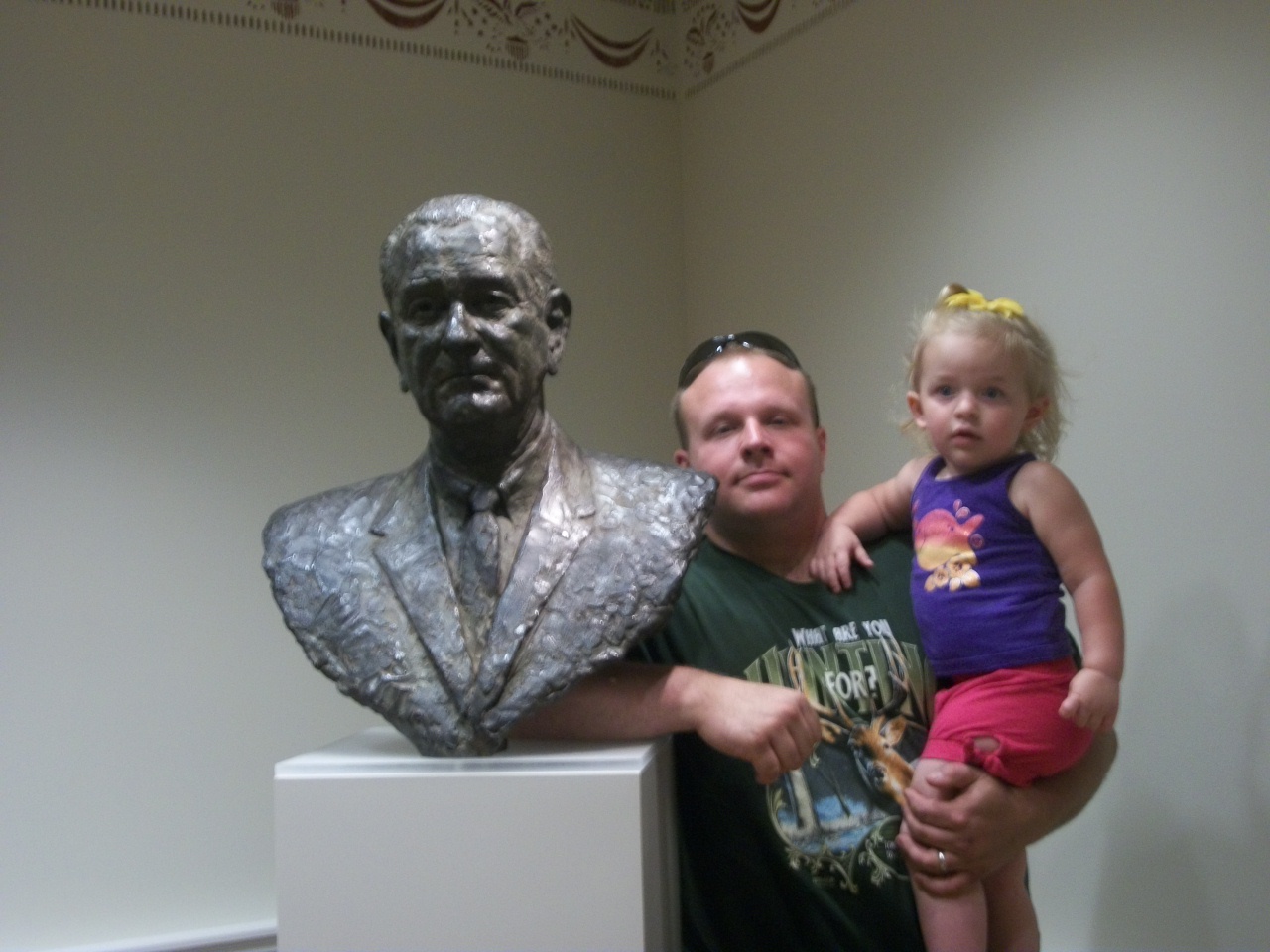 | Klo and I with a bust of LBJ at his Library, 2 years after we visited his gravesite. |
